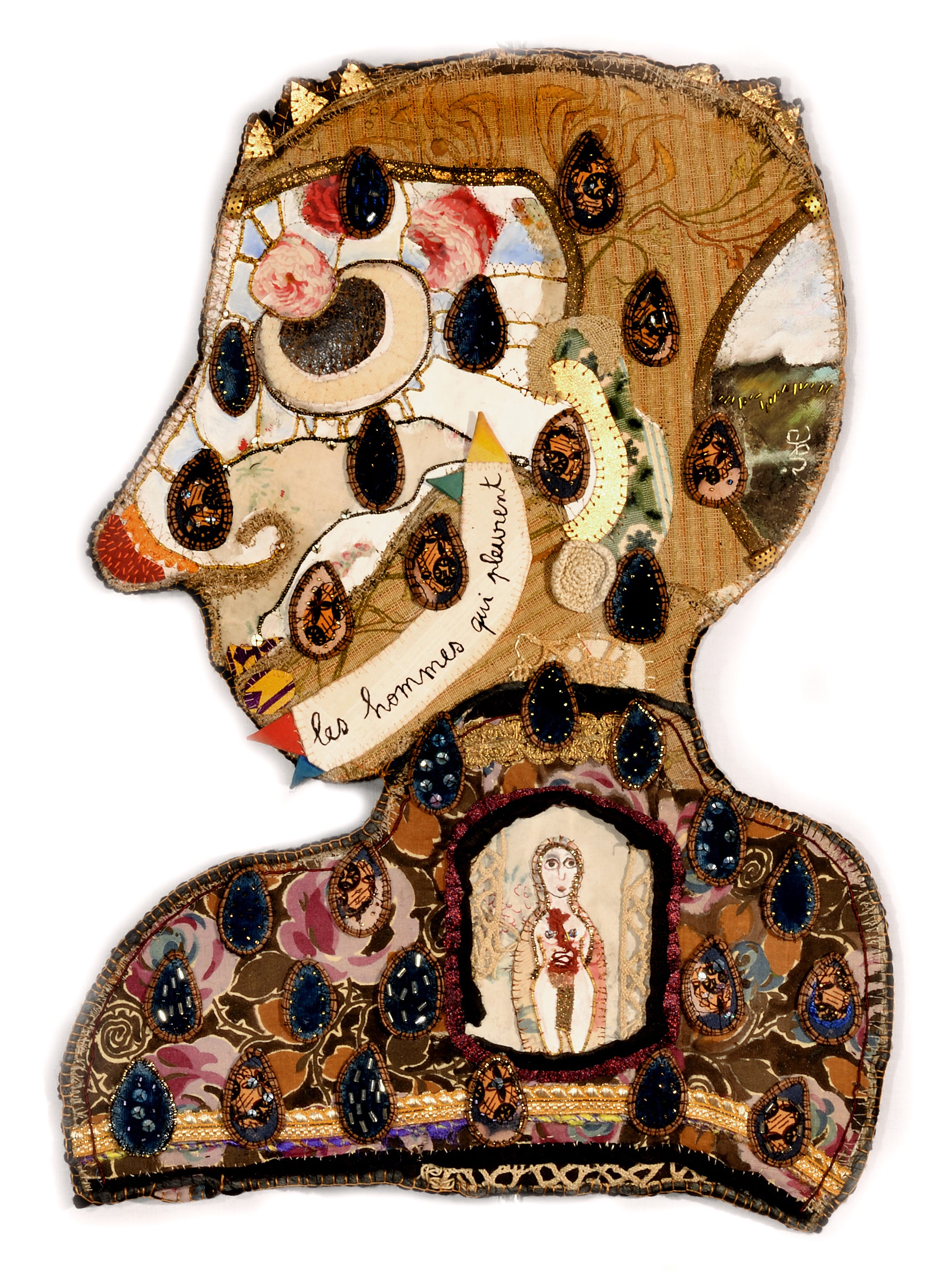 today, we celebrate another month of heart-felt and finely crafted responses to the winged muse monthly writing competition. our muse this month was “The Weeping Man” an art work by French artist, Ise Cellier. For Ise, her favourite medium of thread is ‘a symbol of suture, repair, scar or ligature, a thread that unites, a thread that links each of the stories told in her creations.’ and through her art a portal was fashioned for the writers here to speak on the topic of men, relationships and social conditioning. And you will be thrilled to read an offering by Saraswati herself, commended here.